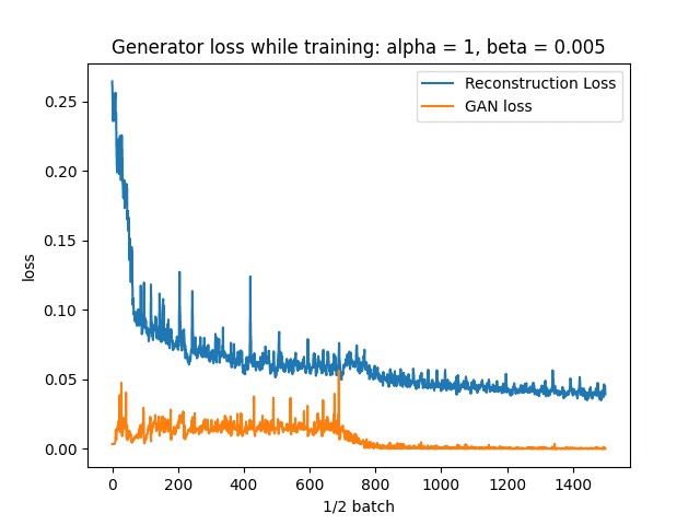 # Here is where I plotted the ae_loss and gan_loss values in order to tune alpha and beta